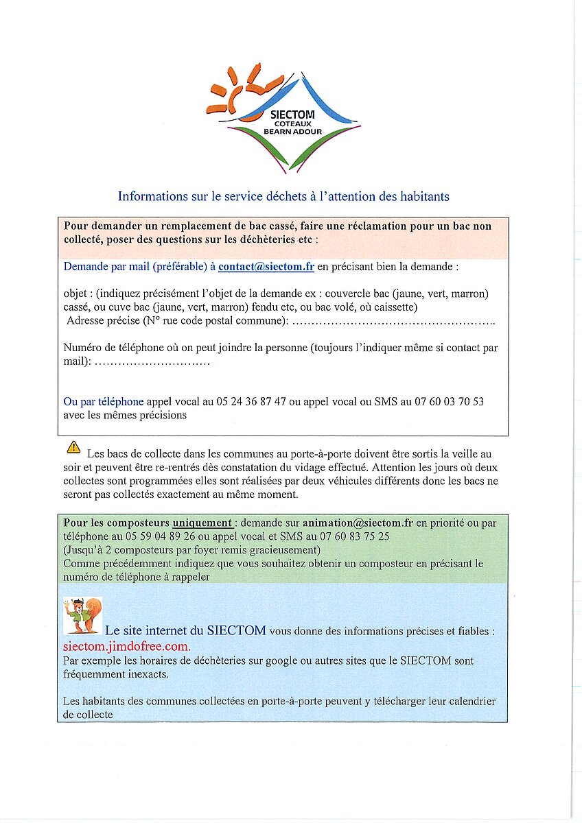 Vous pouvez les contacter par mail : contact@siectom.fr ou par téléphone au 05.24.36.87.47 voir fiche ci-après